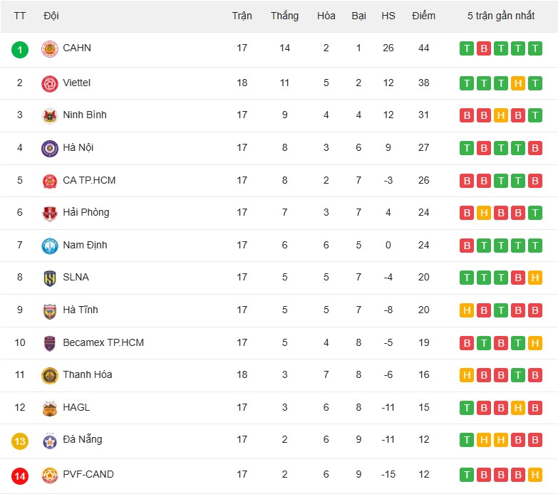 Trong khi đó, trận thua này khiến Thanh Hóa không thể cải thiện thứ hạng. Thầy trò HLV Mai Xuân Hợp vẫn chỉ đang đứng thứ 16 và hơn nhóm cầm đèn đỏ chỉ 4 điểm. Hiện tại, SHB Đà Nẵng và PVF-CAND vẫn đang là hai đội đứng cuối cùng trên BXH.
