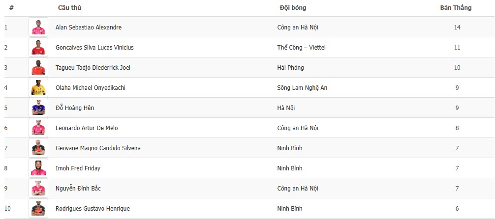 Ở nhóm đầu danh sách vua phá lưới, Alan của CAHN vẫn dẫn đầu với 14 bàn. Xếp sau là Lucao (11 bàn), Tagueu (10 bàn), cùng nhóm bám đuổi gồm Olaha, Hoàng Hên (9 bàn) và Leo Artur (8 bàn).