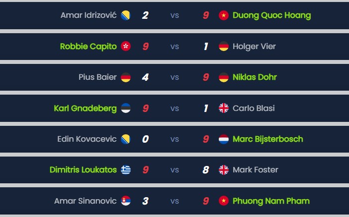 Các cơ thủ của Việt Nam đều thể hiện phong độ tốt ở vòng loại. Đáng chú ý, lá cờ đầu Dương Quốc Hoàng chỉ mất hơn một giờ đồng hồ để đánh bại tay cơ chủ nhà Amar Idrizović với tỉ số 9-2 qua đó chính thức bước vào vòng knock-out ở giải đấu năm nay.