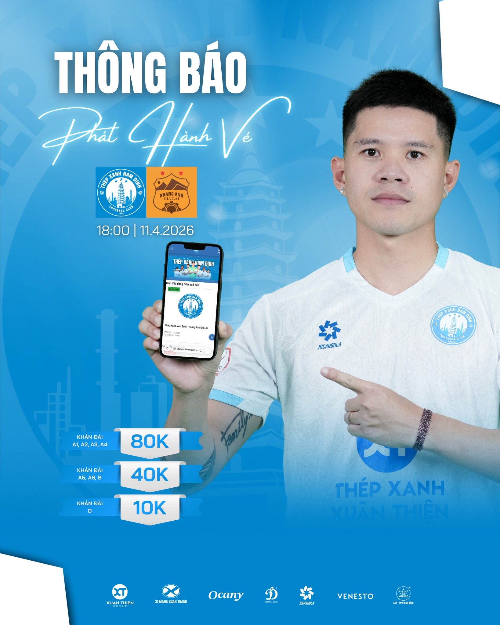 Đây là mức giá vô cùng phải chăng để các CĐV lấp đầy chảo lửa Thiên Trường. Trận đấu giữa Nam Định và HAGL sẽ diễn ra lúc 18h00 ngày 11/4.