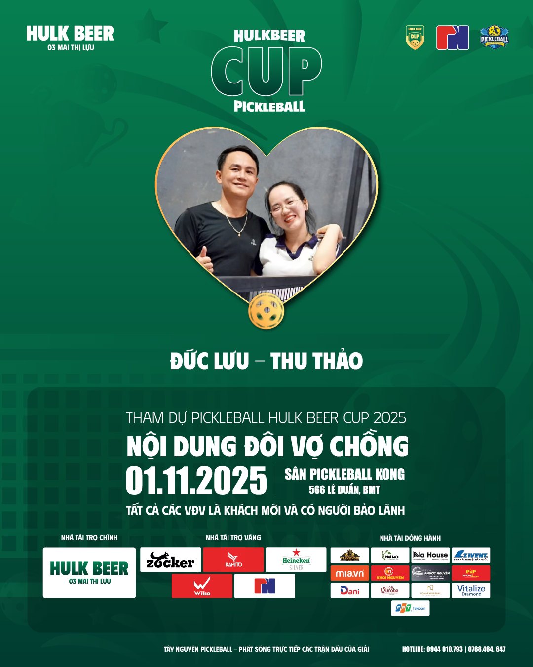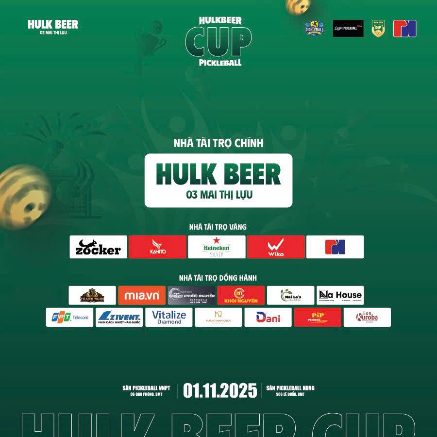 Giải Pickleball Hulk Beer Cup 2025 sẽ chính thức khởi tranh vào ngày 1/11 tại phường Ea Kao, Đắk Lắk, quy tụ hơn 130 cặp vận động viên đến từ nhiều tỉnh thành như TP.HCM, Đồng Nai, Nha Trang… cùng hội tụ về Tây Nguyên để tranh tài. Sự kiện do TN Media tổ chức, được đánh giá là một trong những giải đấu có quy mô lớn nhất khu vực về mặt tổ chức và truyền thông.