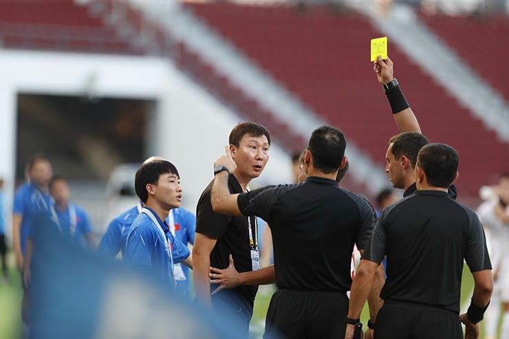 Tấm thẻ vàng của HLV Kim xuất phát từ tình huống gây tranh cãi ở phút 60, khi bàn thắng của Nguyễn Đình Bắc bị trợ lý trọng tài phất cờ báo việt vị. Ông cùng trợ lý Lee Jung Soo phản ứng dữ dội, khẳng định Quốc Việt không tham gia vào pha bóng. Dù sau đó trọng tài chính Rustam Lutfullin "bẻ còi" và công nhận bàn thắng, thẻ phạt dành cho ban huấn luyện vẫn giữ nguyên.