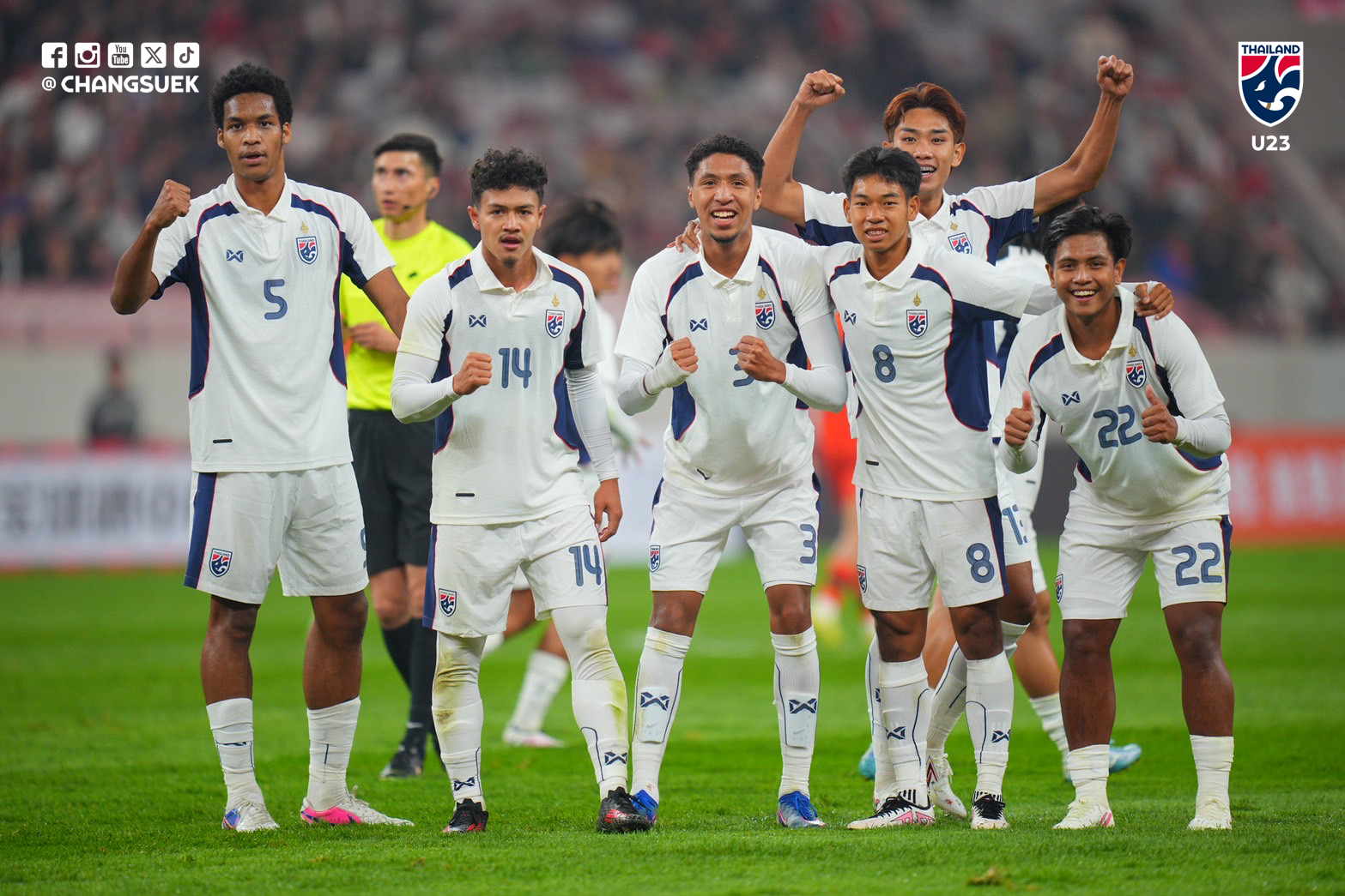 Dù vậy, U23 Thái Lan lại là bên vượt lên trước. Phút 22, Jehhanafee Mamah tận dụng đường kiến tạo của Siraphop Wandee để tung cú vô lê đẹp mắt, mở tỷ số trận đấu. Đến phút 36, Chawanwit Sealao trừng phạt sai lầm của hàng thủ đối phương, nhân đôi cách biệt và giúp đội khách khép lại hiệp một với lợi thế 2-0.