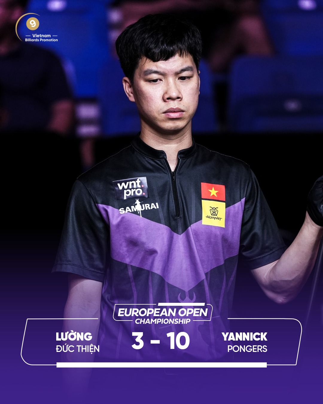 Với Lường Đức Thiện, cơ thủ hàng đầu Việt Nam đã không thể chiến thắng được tài năng trẻ sinh năm 2005 Yannick Pongers khi tay cơ người Hà Lan đã có một ngày thi đấu xuất sắc. Trận đấu khép lại với tỉ số 10-3 dành cho Pongers.