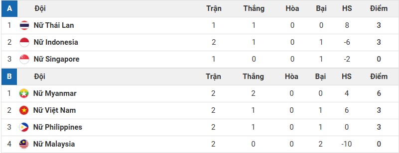 Bảng xếp hạng bóng đá nữ SEA Games 33: ĐT Việt Nam nguy to, có thể dừng bước ngay từ vòng bảng. Cập nhật lịch thi đấu, kết quả của ĐT nữ Việt Nam nhanh và chính xác nhất.