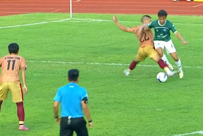 Tuy nhiên, ông Trương Quang Thông chỉ lắc đầu giải thích trận đấu này không áp dụng VAR. Với vị trí quan sát thuận lợi và đứng rất gần pha bóng, trọng tài tự tin vào quyết định của mình. Dù vậy, trên chấm 11m, Nguyễn Minh Lợi lại không thể đánh bại thủ môn đội khách.
