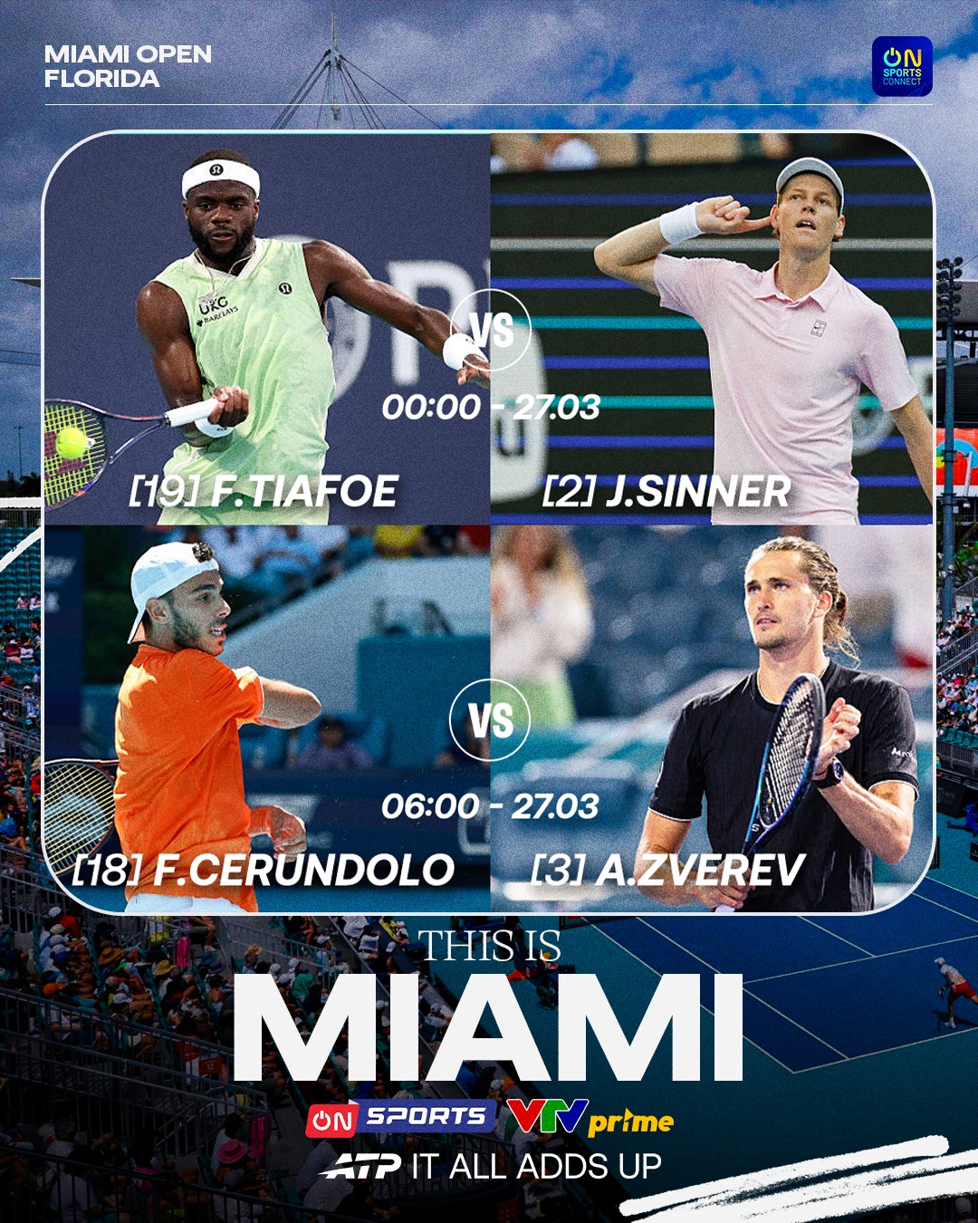 Ở Tứ kết, tay vợt người Đức sẽ chạm trán hạt giống số 18 Cerundolo, người đang có phong độ rất ấn tượng ở giải đấu năm nay với những chiến thắng trước Humbert hay Daniil Medvedev. Các trận đấu của Miami Open 2026 sẽ được trực tiếp trên On Sports và ứng dụng VTV Prime.